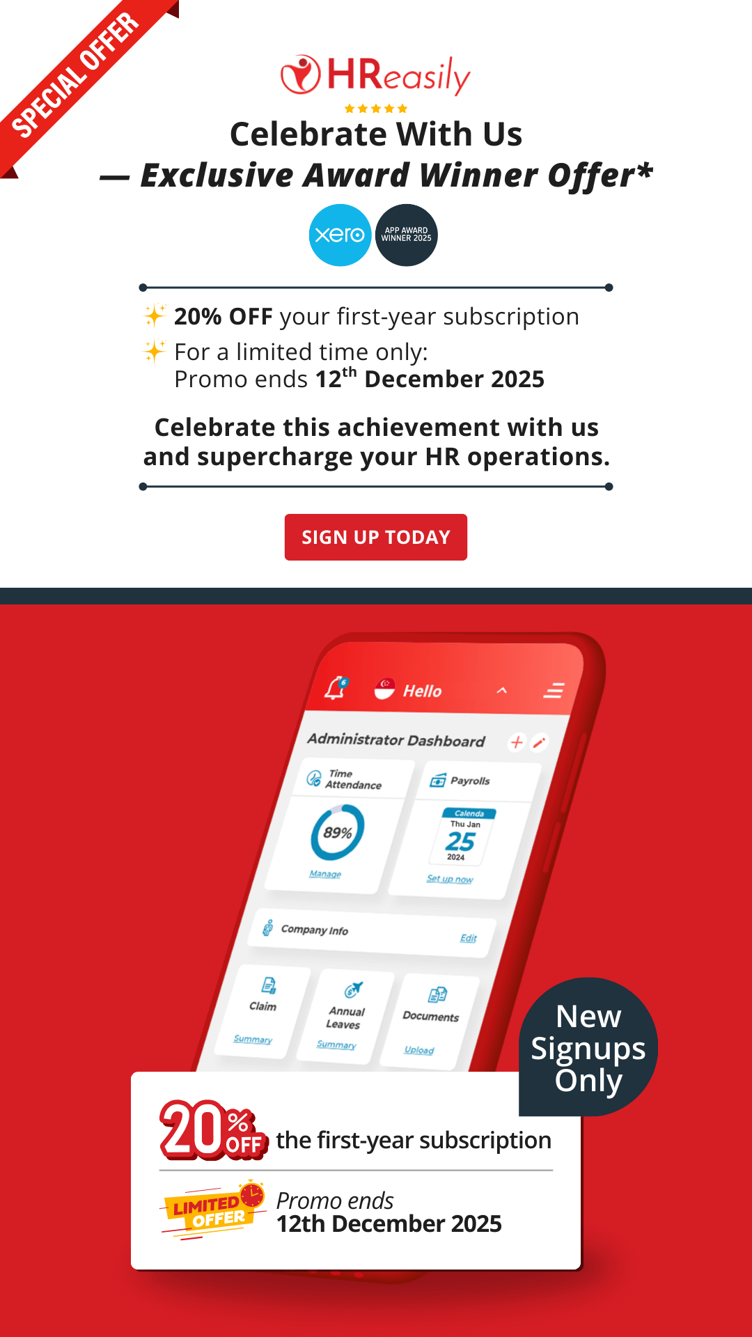 We are more than just a platform, we are your HR management team. We focus on providing you with digitised solutions that will make your workflow easier and minimise the risk of human errors, for as low as $2 per employee per month.