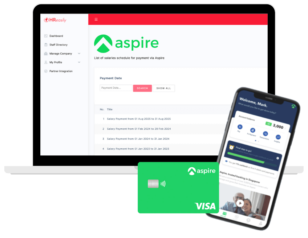 The integration is available for HReasily users in Singapore with an active Aspire Business Account.